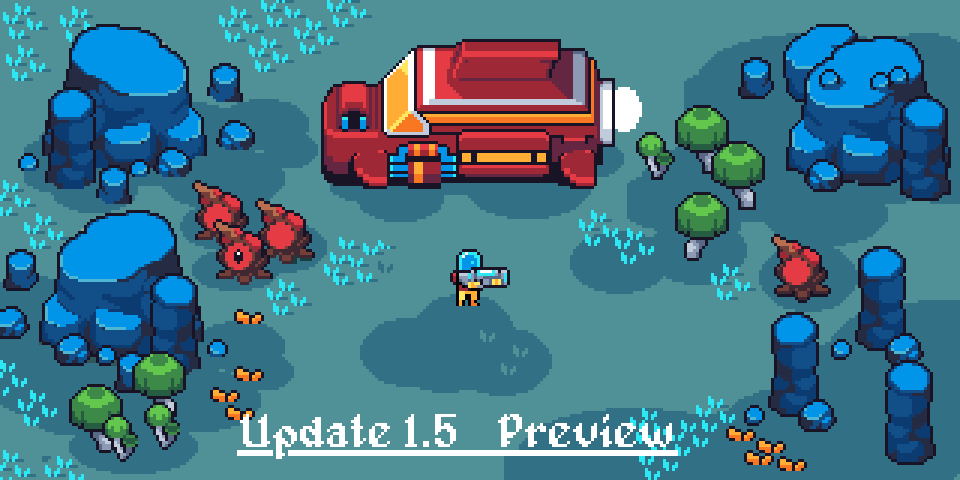 Update 1.5 is a space themed update including an alien world tilemap with new character skin, animated foliage and spaceship sprite.